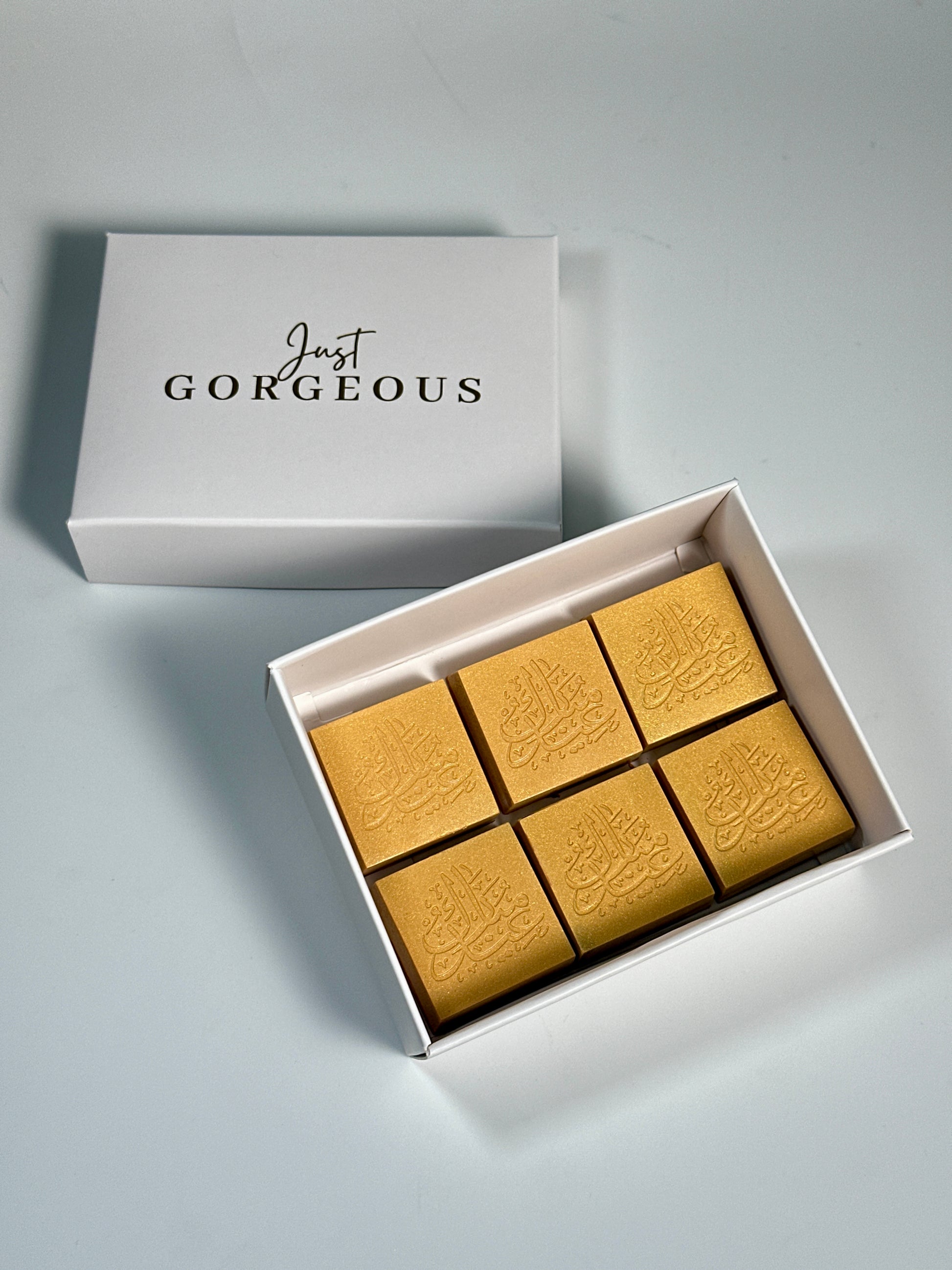 Indulge in the exquisite luxury of our Belgian chocolate squares, each a harmonious blend of velvety pistachio cream and delicate kataifi filling. Adorned with a shimmering gold spray and inscribed with the heartfelt phrase "Eid Mubarak," these squares are not merely treats; they are a celebration of opulence and tradition. Perfect for sharing with loved ones or as a standout centrepiece for your Eid celebrations, they elevate the spirit of the occasion and create lasting memories.
