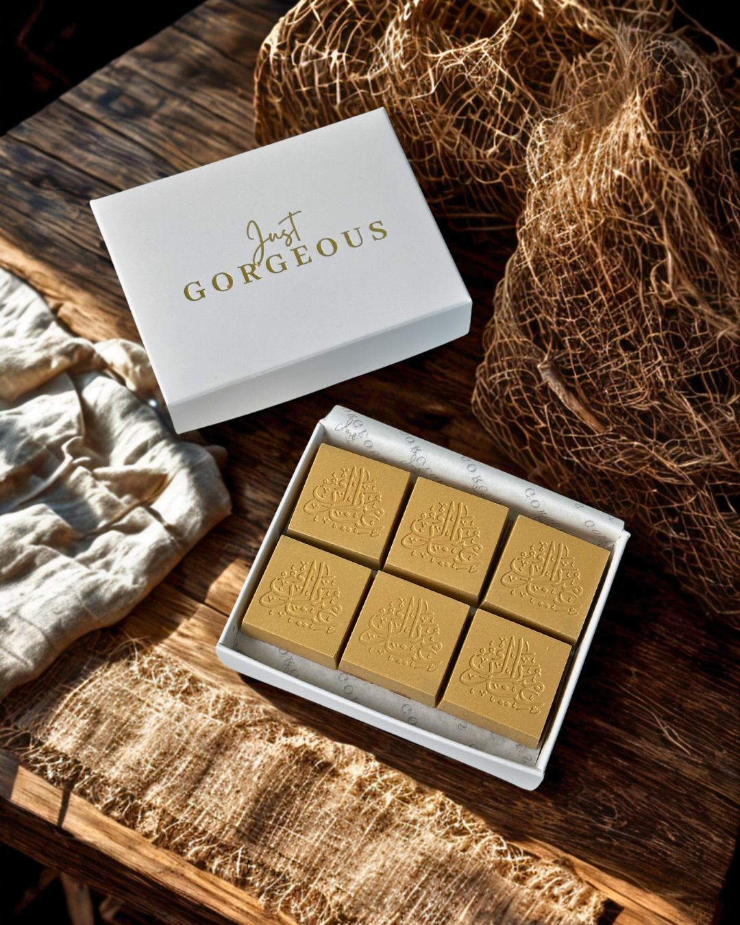 Indulge in the exquisite luxury of our Belgian chocolate squares, each a harmonious blend of velvety pistachio cream filling. Adorned with a shimmering gold spray and inscribed with the heartfelt phrase "Eid Mubarak," these squares are not merely treats; they are a celebration of opulence and tradition. Perfect for sharing with loved ones or as a standout centrepiece for your Eid celebrations, they elevate the spirit of the occasion and create lasting memories.