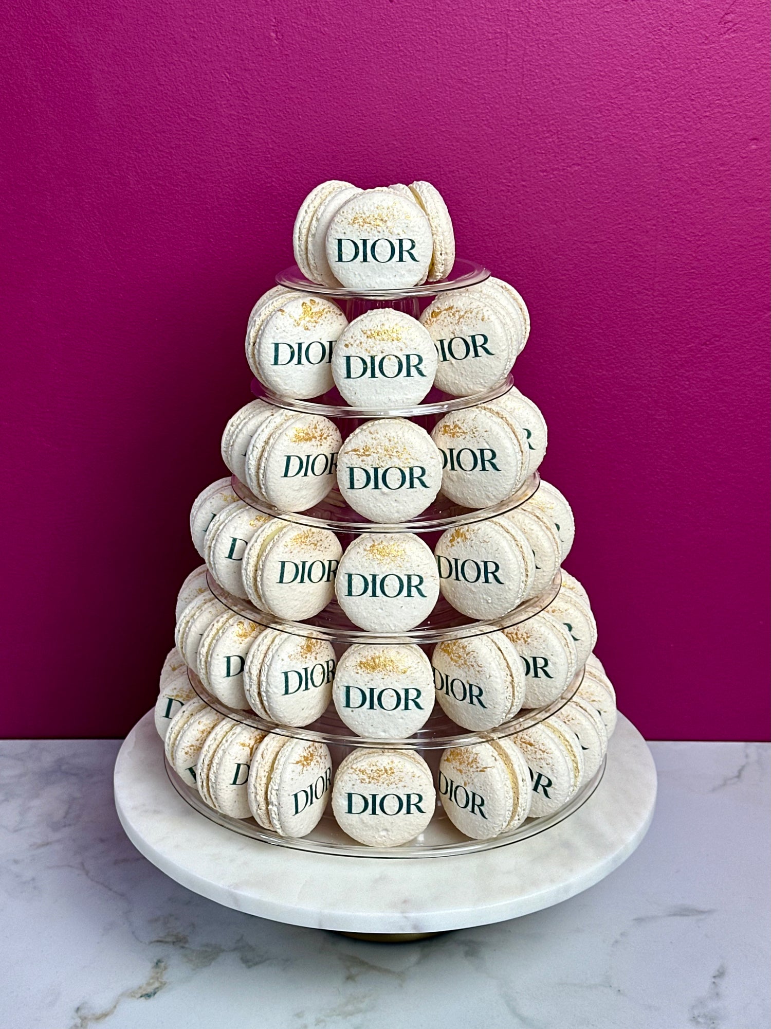 Our macaron towers are the perfect statement piece for your event standing 6 tiers tall consisting of 75 of our signature macarons